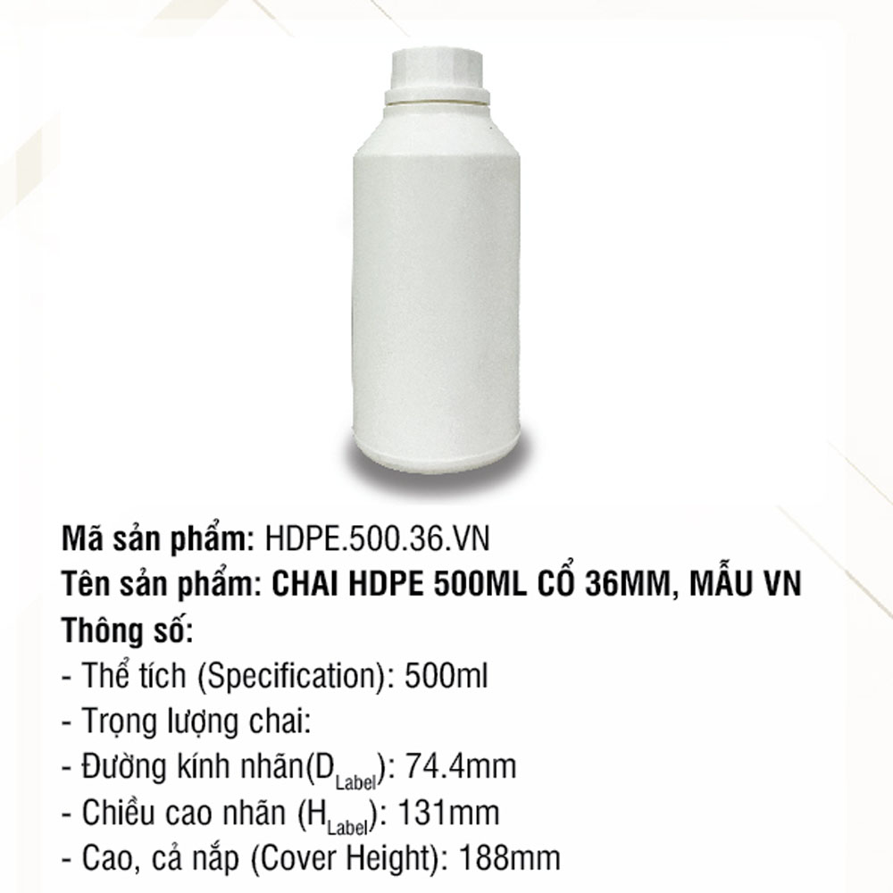 Chai HDPE 500ml Cổ 36mm, Mẫu VN